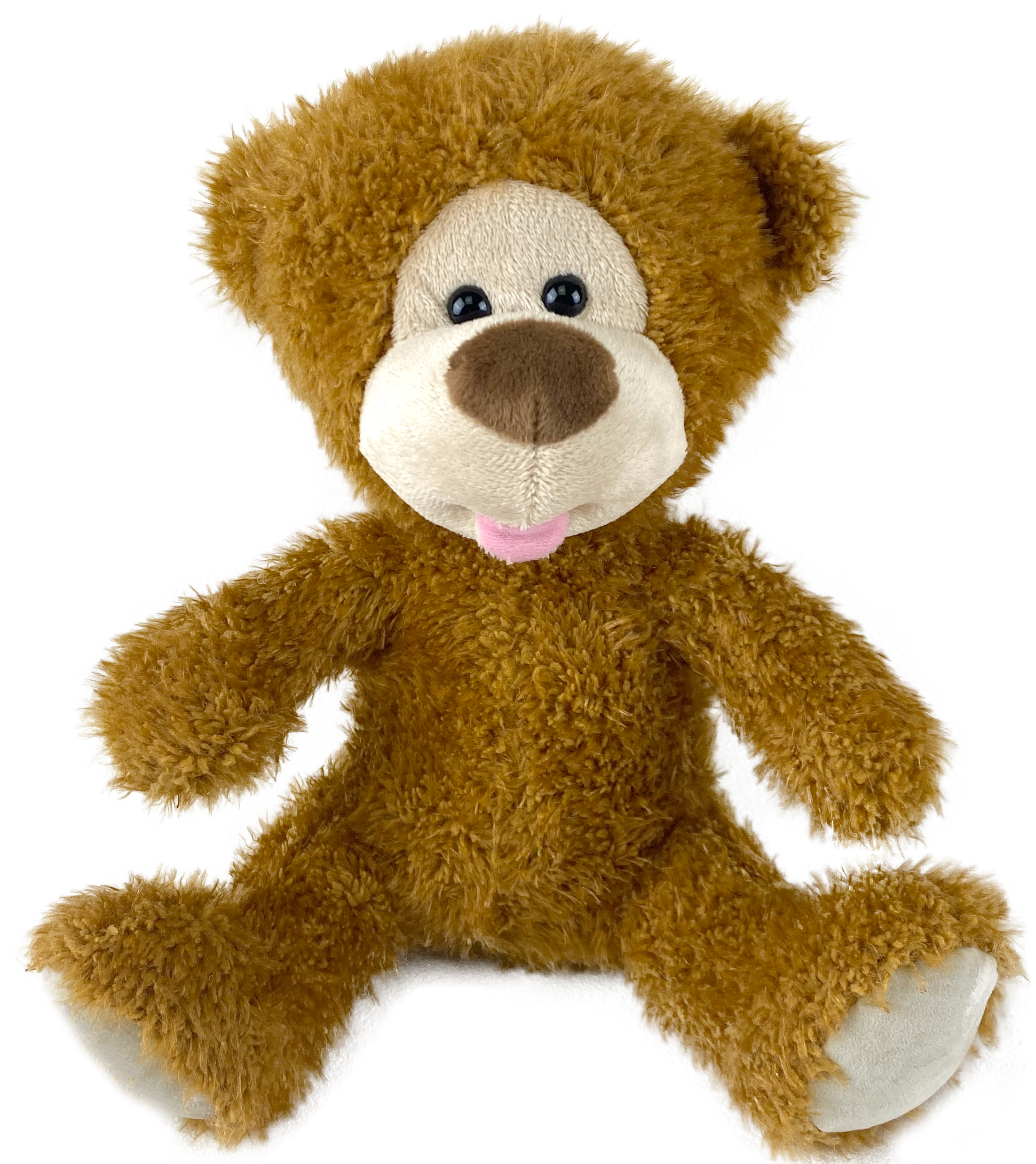 Oskar ist ein 25 cm großer Teddybär aus orange-braunem Plüsch mit beige eingesetzem Gesicht der frech seine Zunge rausstreckt. Der Pullover ist separat in unserem Shop zu finden und nicht im Bastelset enthalten.
