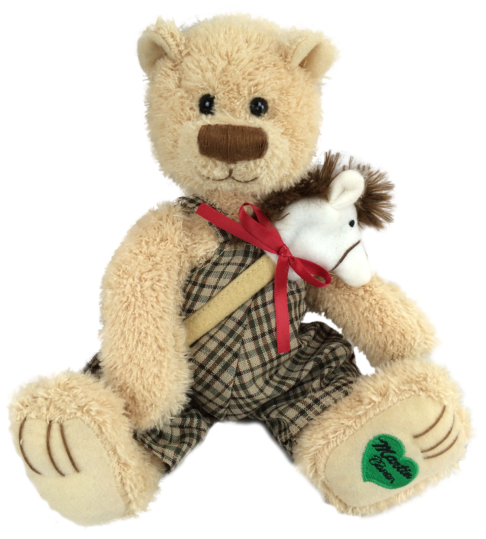 Felix ist der Nostalgische. Er sieht aus wie man sich einen kleinen Jungen von früher vorstellt: Mit karierter Latzhose und Steckenpferdchen zum Spielen. Felix ist 25cm groß.