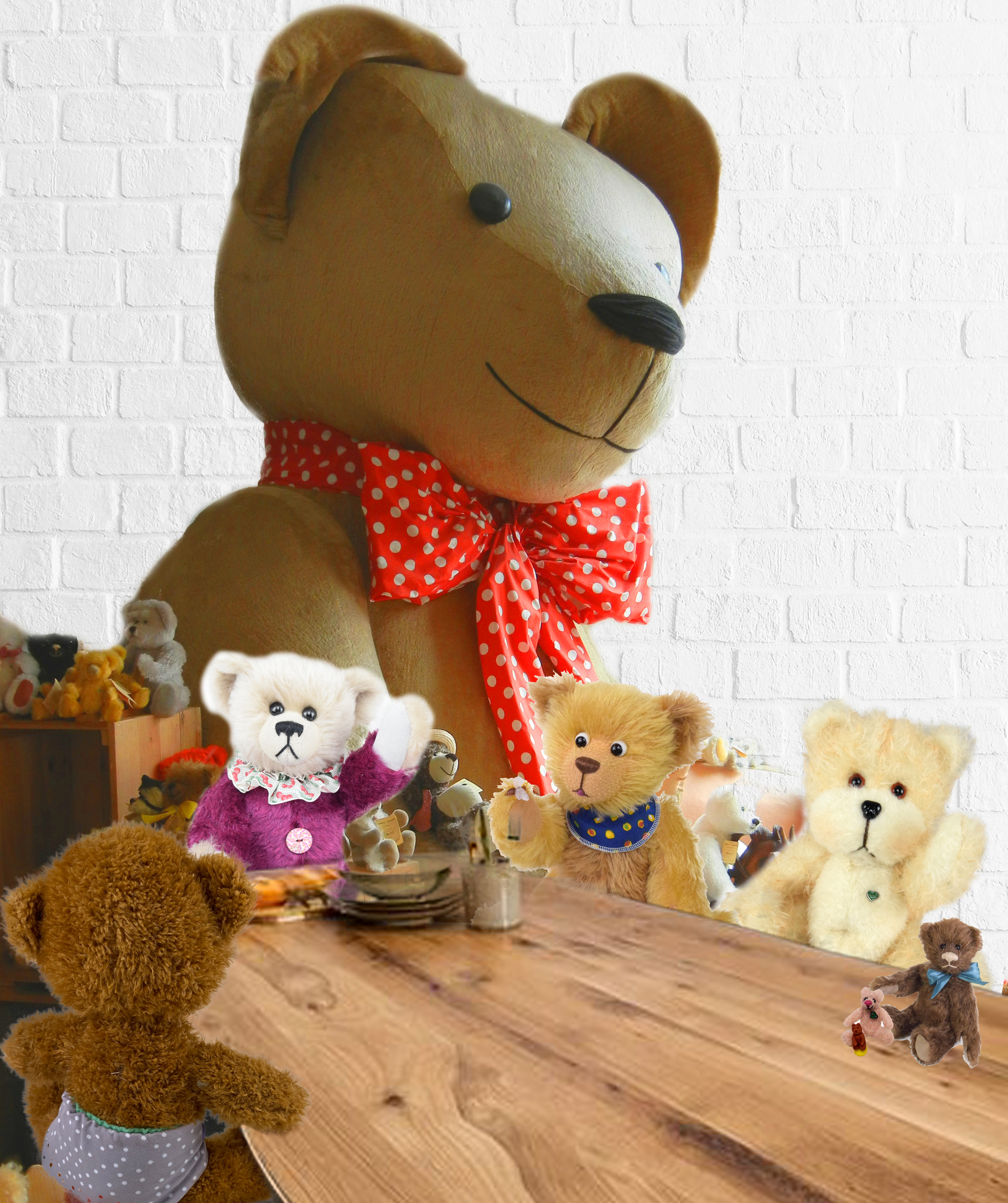 Alle freuten sich auf Weihnachten. Der große Bär begrüßte seine plüschigen Kollegen und sagte, "jetzt wo alle weg sind, können wir doch auch schon unsere Weihnachtsparty vorbereiten". Der große Bär konnte leider nur Anweisungen geben, weil er durch seine Größe nicht mehr aufstehen und mithelfen kann.