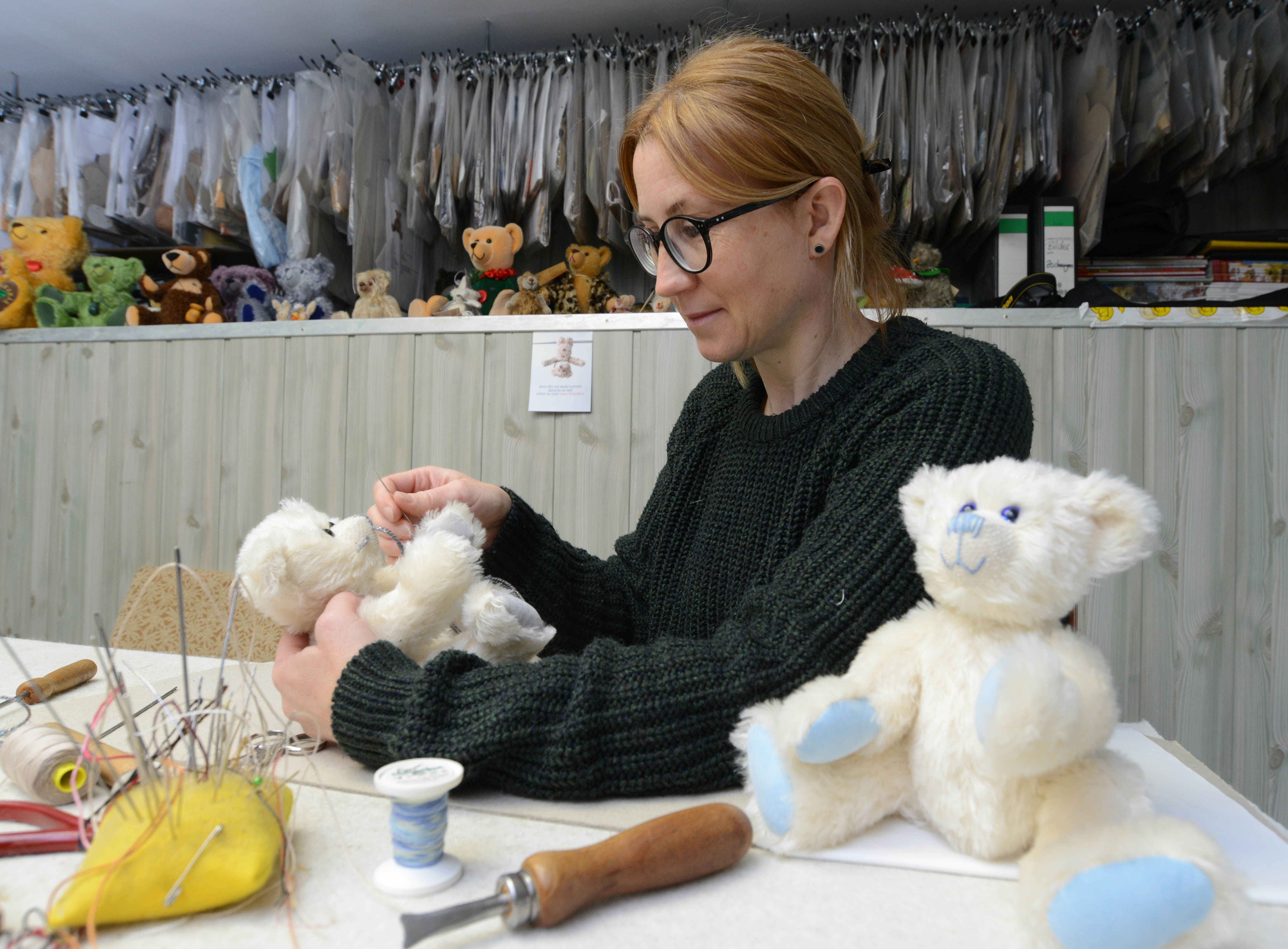 „Die meisten Bären werden von Sammlern erworben“, berichtet Sina Martin. Die 33-Jährige führt den Famili- enbetrieb in der fünften Generation. Der Käuferkreis sei zwar klein, aber stabil. „Doch die Kundschaft altert“, blickt die Firmenchefin in die Zukunft. Um mehr Jüngere anzusprechen, bietet sie Work- shops in Schulen und Kitas an, lädt ins hauseigene Bärenmuseum ein.