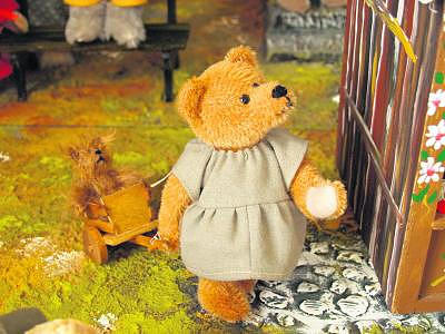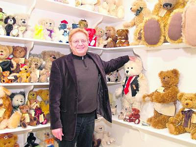 Bild 1: Rainer Martin hat in seiner Werkstatt in der Sonneberger Bahnhofstraße ein Bärenmuseum eröffnet, wo auch die Herstellung der knuddeligen Kleinen besichtigt werden kann.