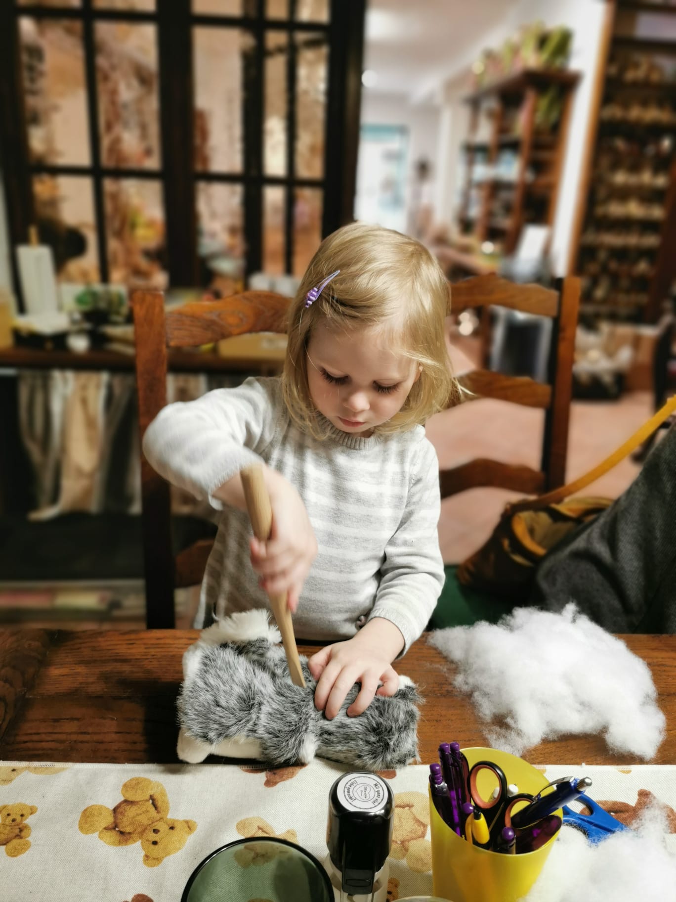 Wenn man einen Bären bei Martin Bären selber macht, kann man seine eigenen Fertigkeitsstufen besser angehen; du lernst modellieren mit Stopfwatte, einfaches Nähen mit Nadel und Faden und Kreativität bei der Namenswahl.