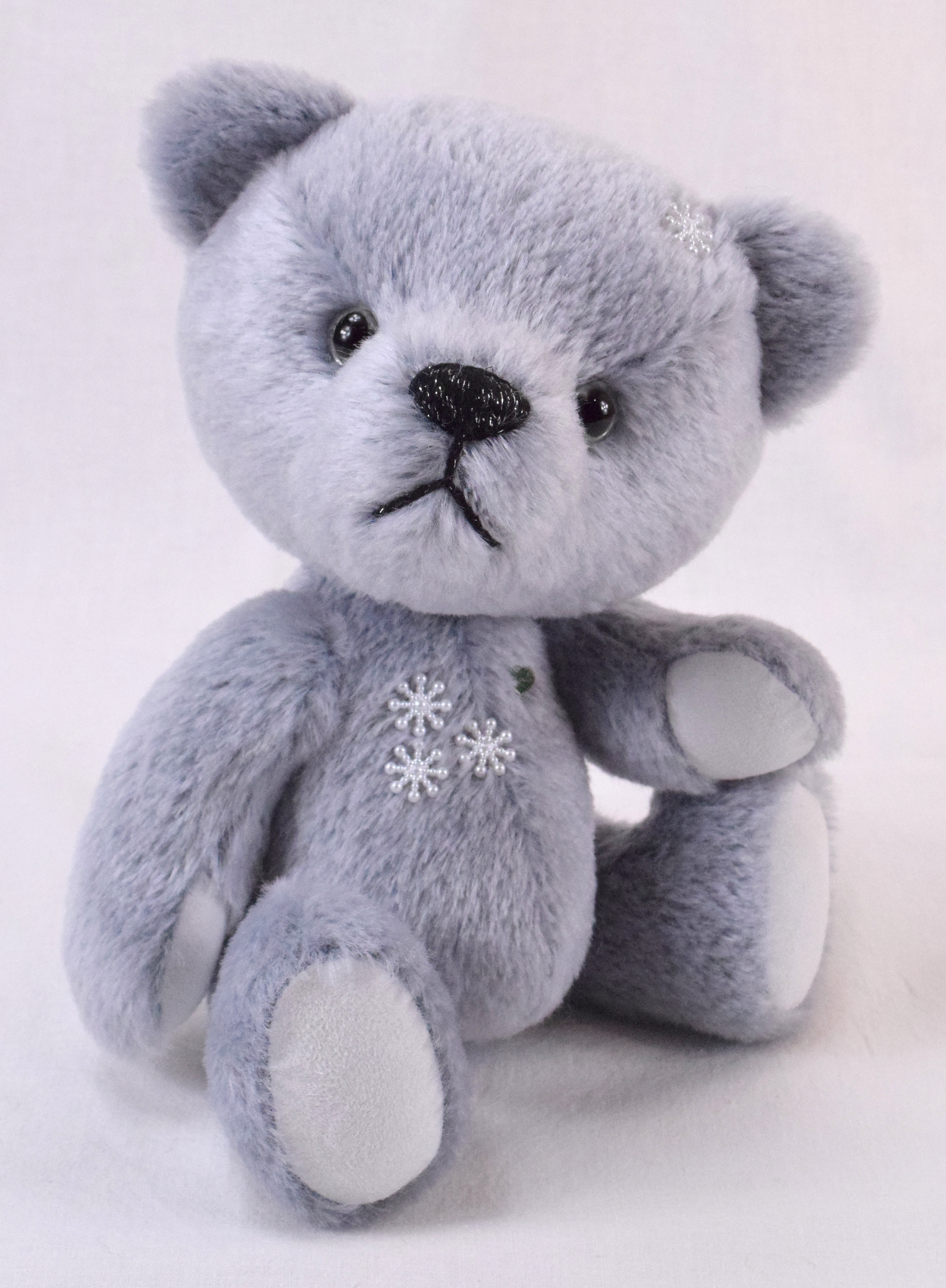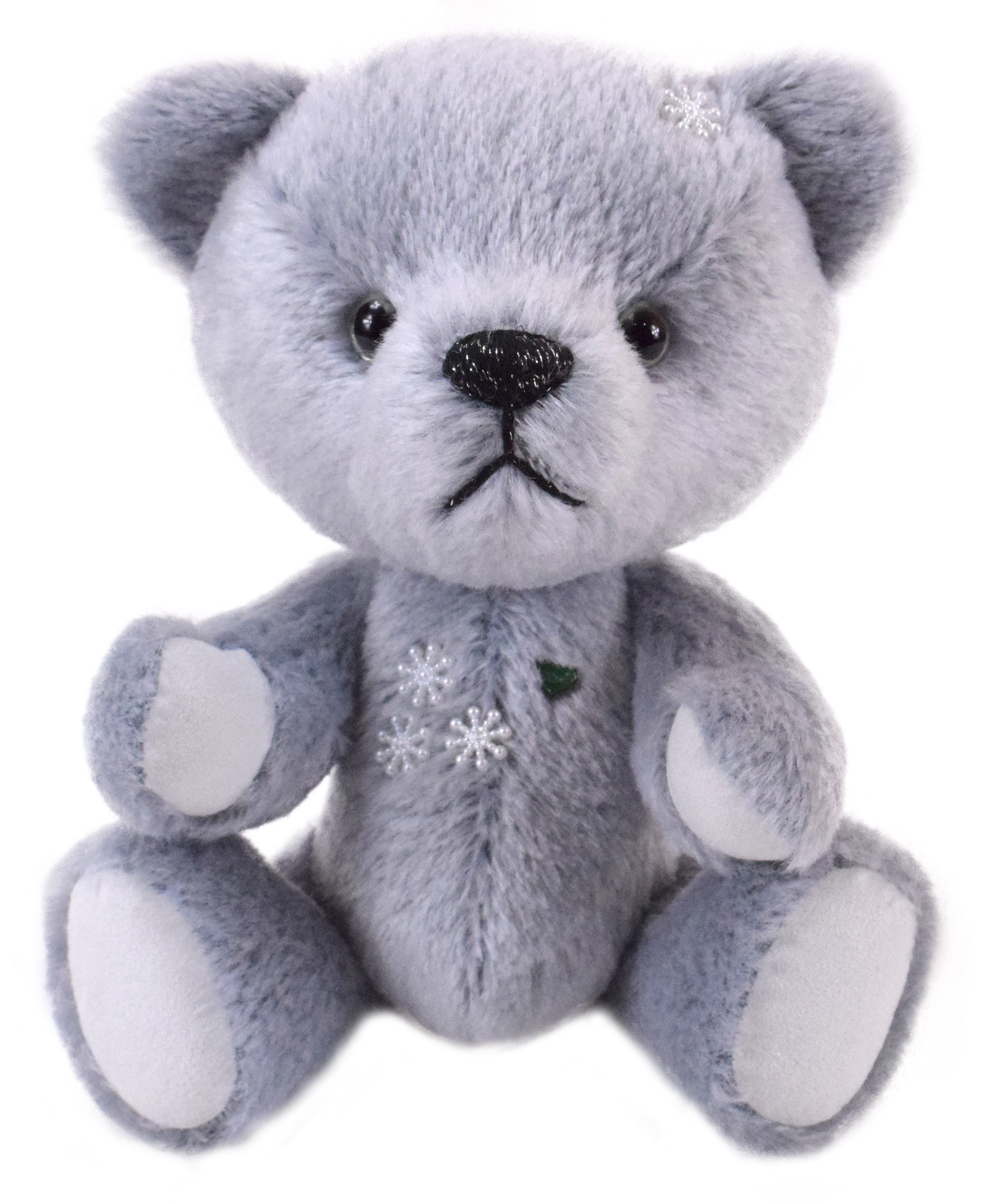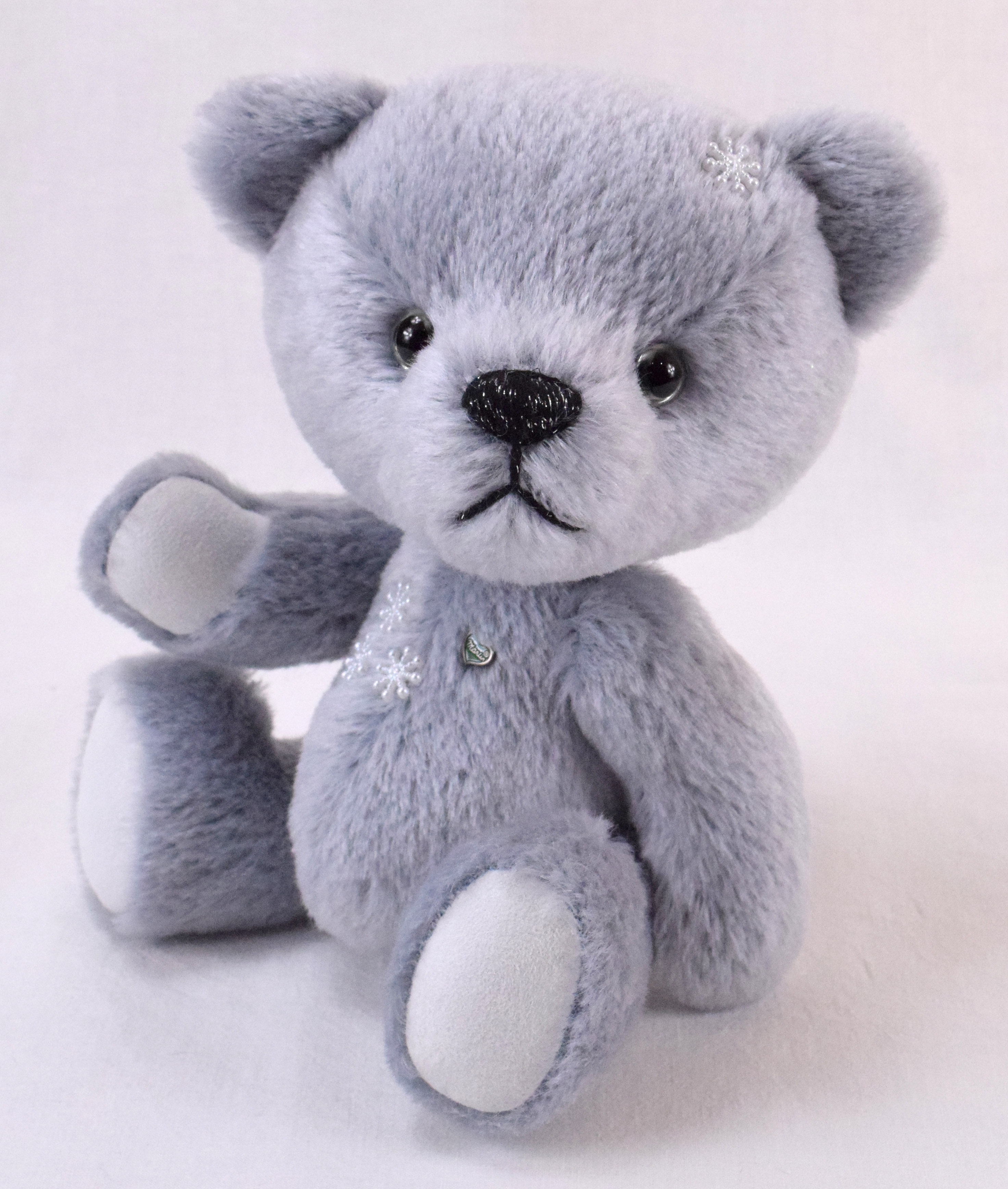 Dieser Teddybär ist so eisblau, wie der Himmel, kurz bevor Schnee fällt.