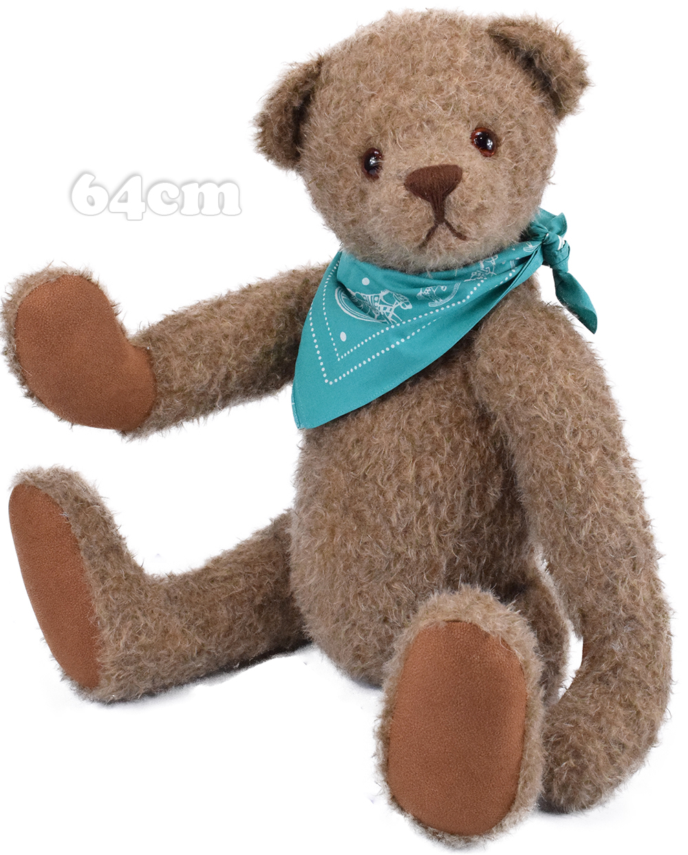 Besonders charmant trägt Bärtram sein grünes Halstuch, das seinen nostalgischen Charakter perfekt unterstreicht. Ein Teddy, der nicht nur durch seine Größe beeindruckt, sondern auch durch seine liebevolle Verarbeitung und seine warme Ausstrahlung.