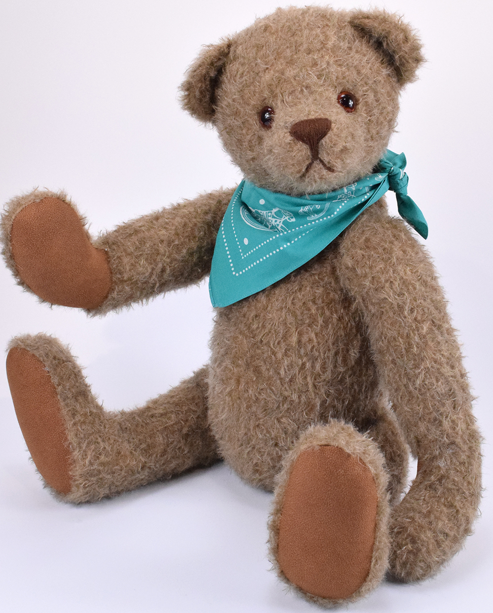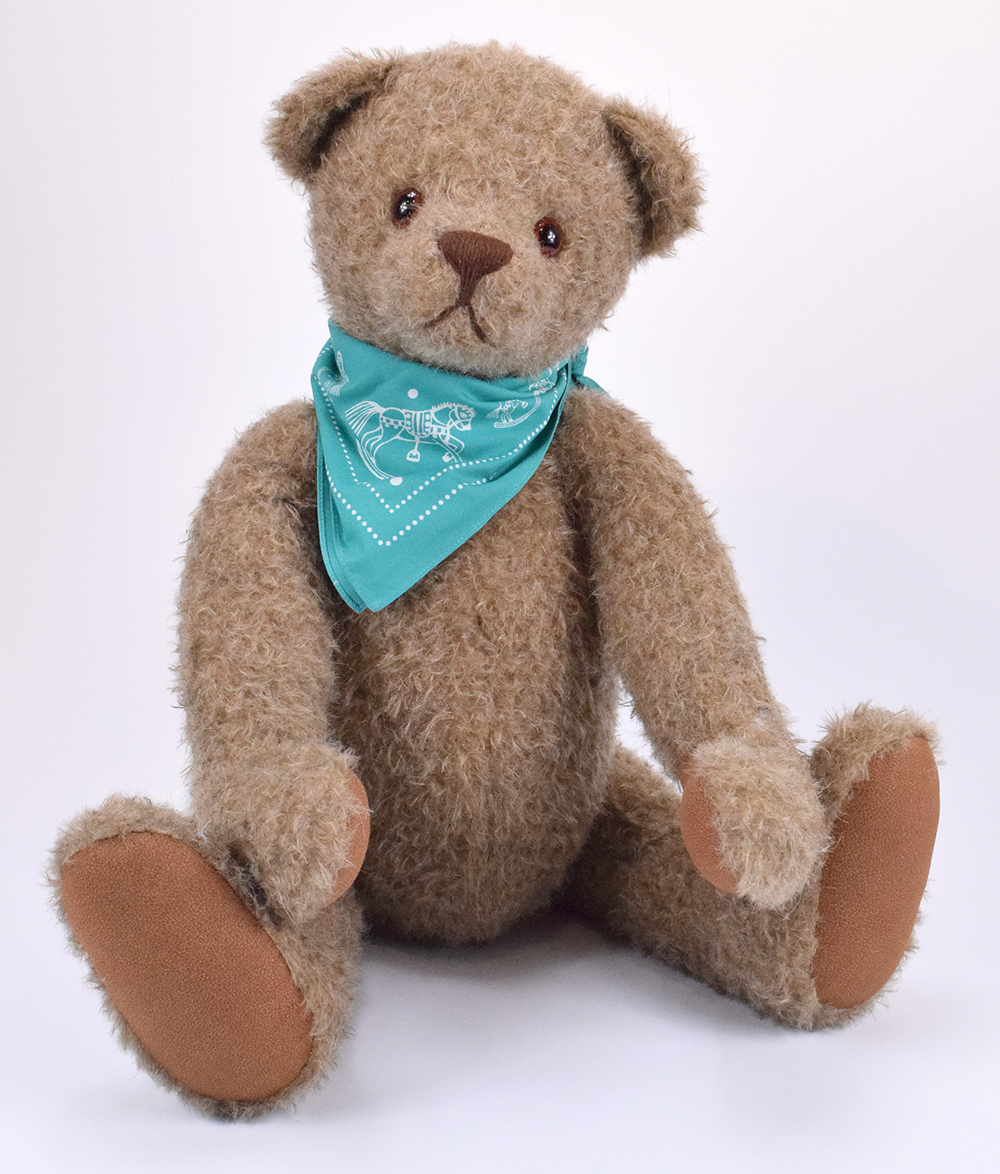 Bärtram verkörpert den Charme vergangener Zeiten – ein klassischer Teddybär, wie man ihn aus den schönsten Kindheitserinnerungen kennt. Gefertigt aus hochwertigem Ratinée-Mohair, beeindruckt er mit seiner stolzen Größe von 64 cm und seinem traditionellen Design. Seine braunen Glasaugen verleihen ihm einen tiefen, sanften Blick, und seine tiefe Brummstimme sorgt für echtes Teddy-Flair.
