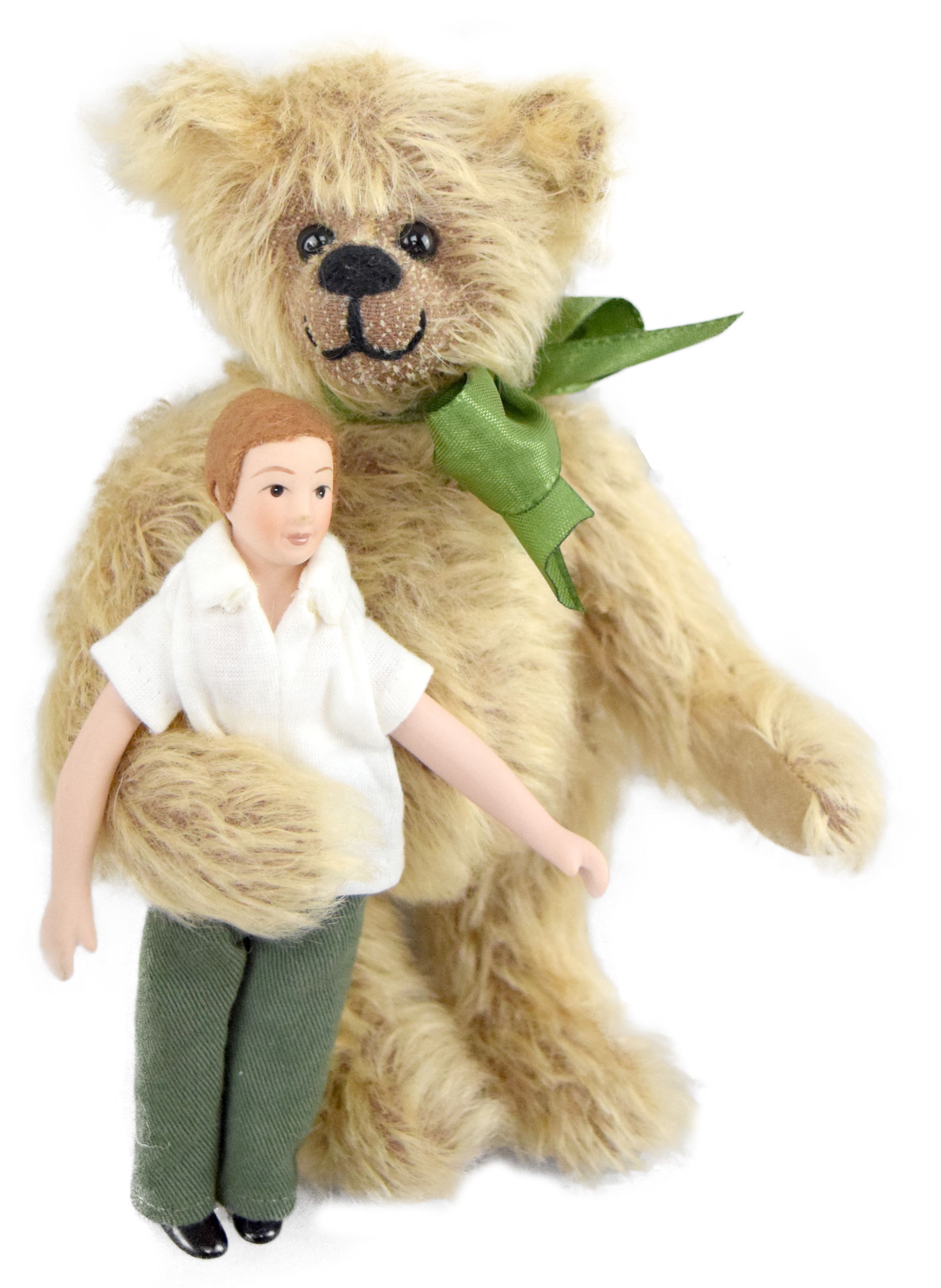Der 21cm große Teddybär aus beige-braunem Mohair hält ein kleines Püppchen im Arm. Beide zusammen (Puppe und Bär) möchten mit Ihnen das Teddy- und Puppenfest 2019 vom 26.5.-2.6.2019 in Sonneberg feiern! Beide sind zusammen nur auf 19 Stück weltweit limitiert.