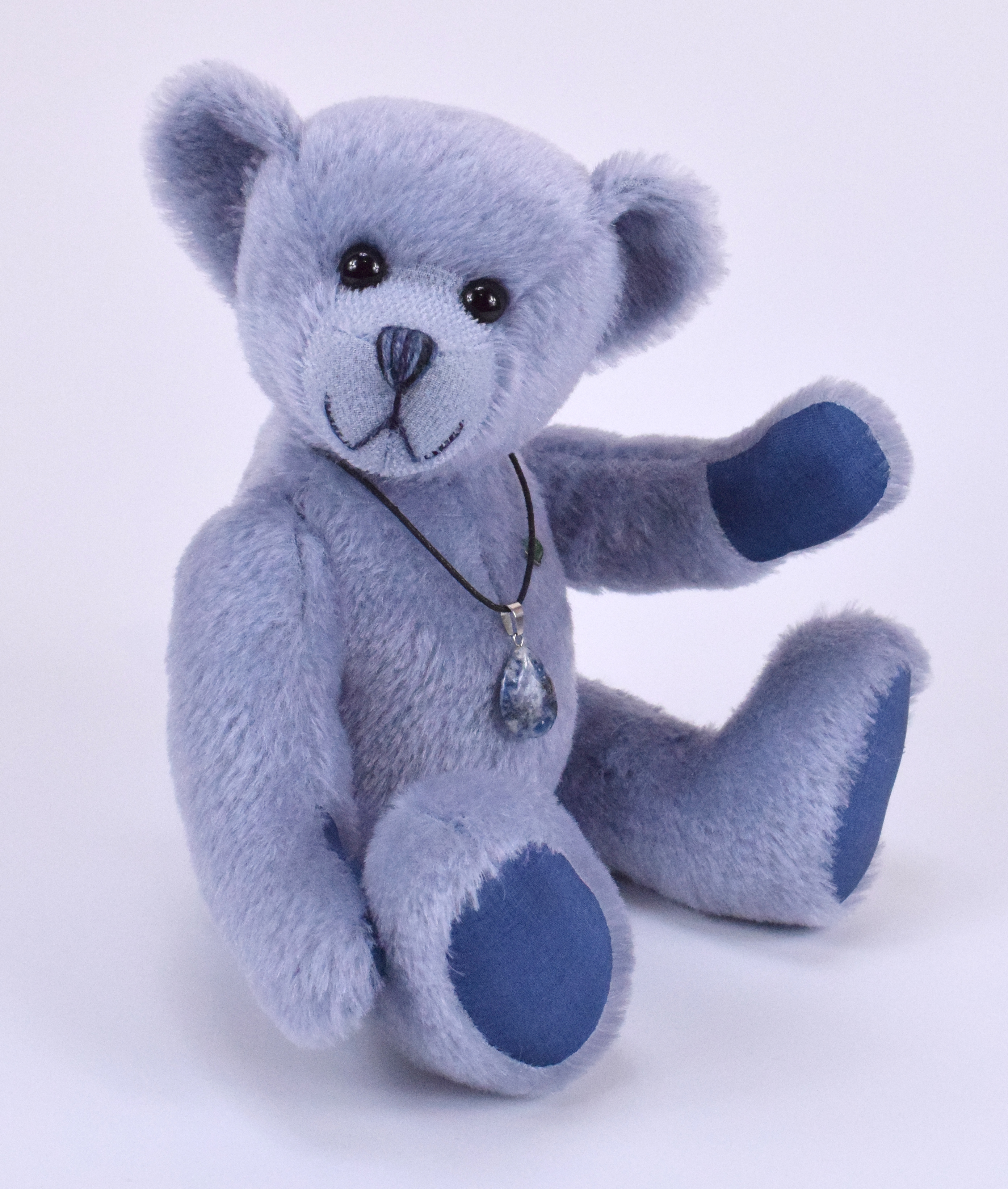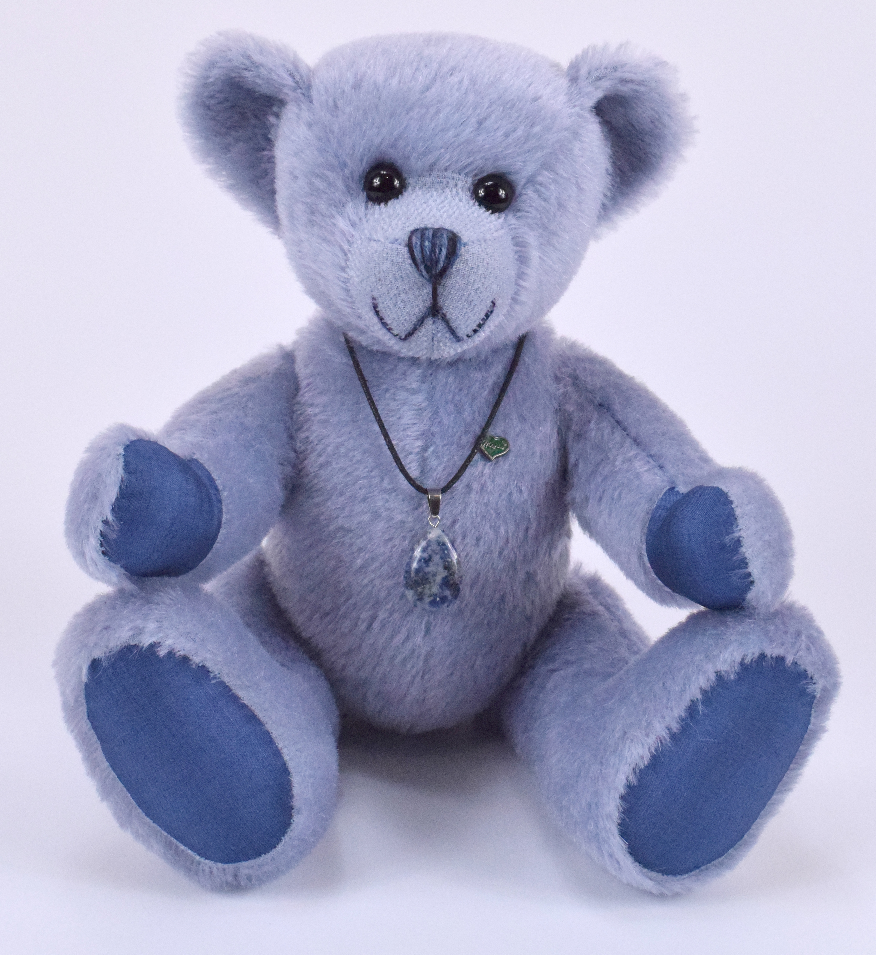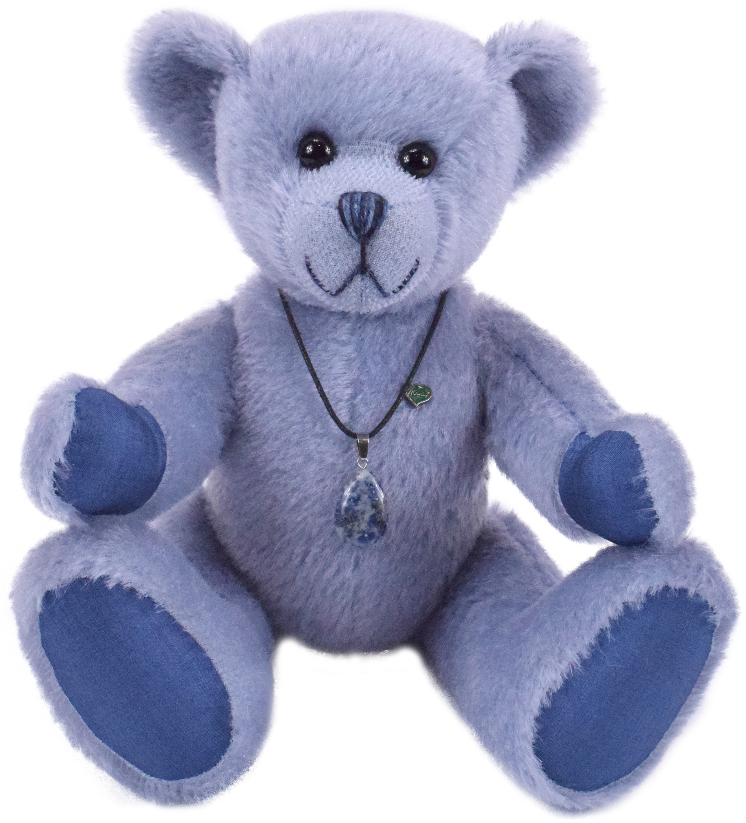 Der Glückssteinbär trägt einen echten Sodalith-Anhänger, der abnehmbar ist und als Schmuckstück separat getragen werden kann. Jeder Stein ist ein Unikat mit einer einzigartigen Form – ein wahrhaft besonderer Glücksbringer!