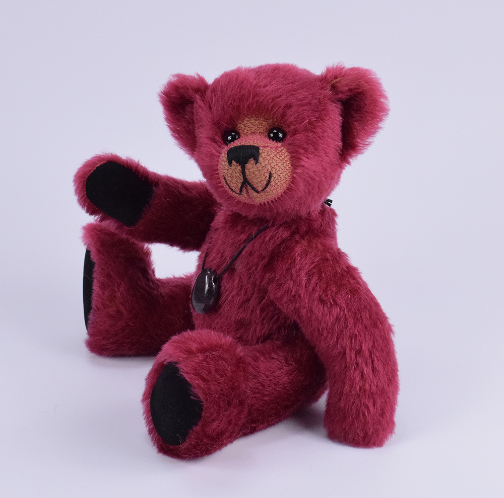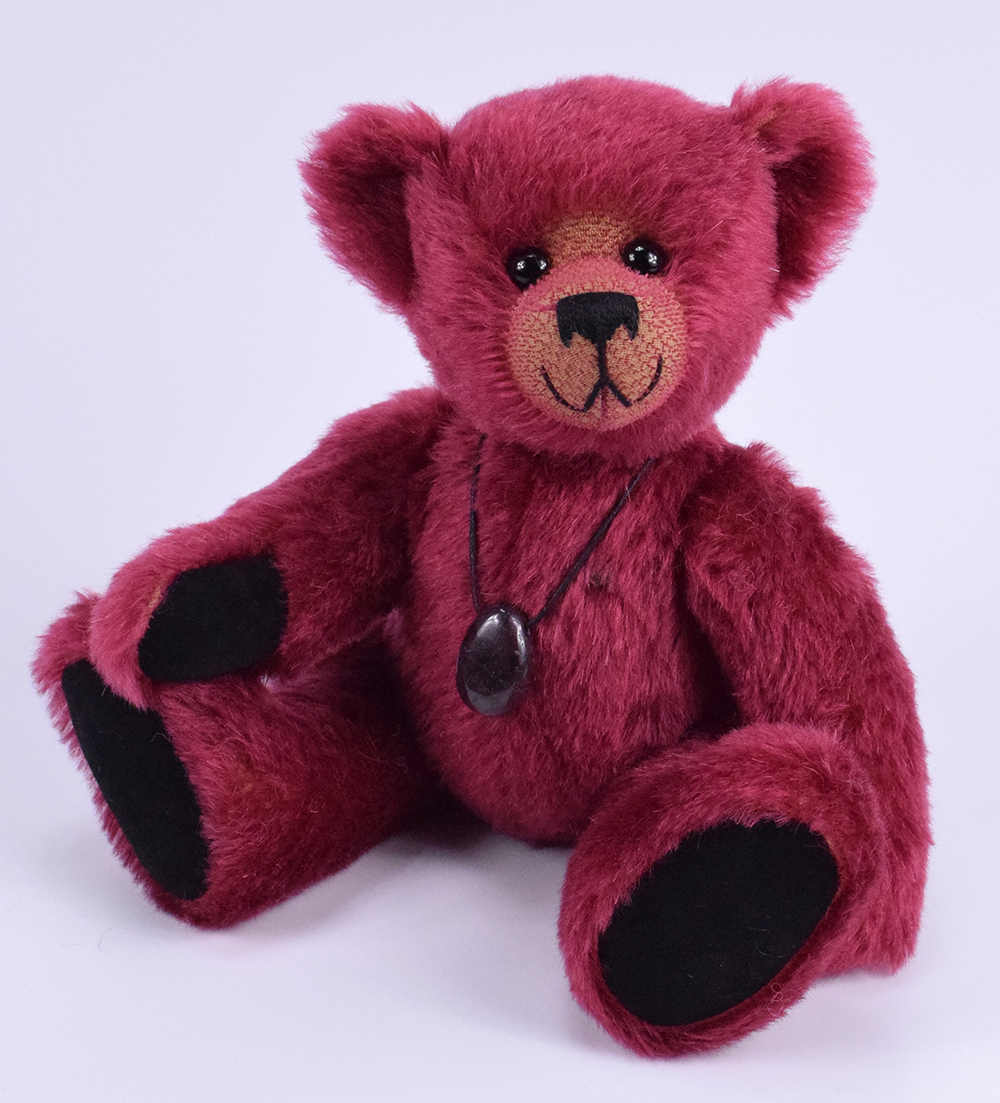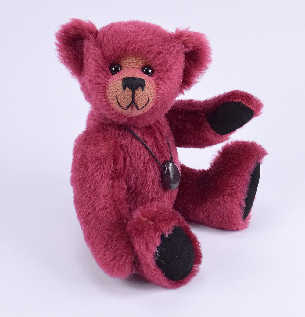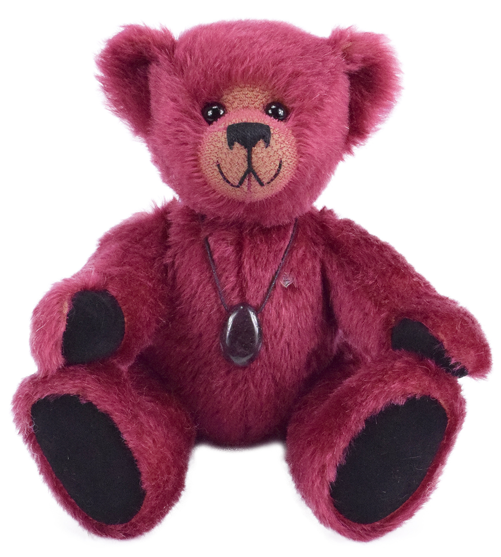 Granat ist ein 30cm großer Mohairteddy in einer außergewöhnlich schönen, tief weinroten Farbe – passend zum gleichnamigen Edelstein. Das hochwertige weinrote Mohair verleiht ihm nicht nur eine luxuriöse Optik, sondern auch eine besonders anschmiegsame Haptik. Als Herzstück trägt der Teddy einen echten, dunkelroten Granat-Anhänger. Der Anhänger besteht zu 100 % aus Naturstein – jeder einzelne Granat ist in Form und Maserung einzigartig und macht somit jeden Teddy zum Unikat. Die Kette kann separat getragen werden und ist damit nicht nur ein dekoratives Accessoire, sondern auch ein vielseitiges Schmuckstück.