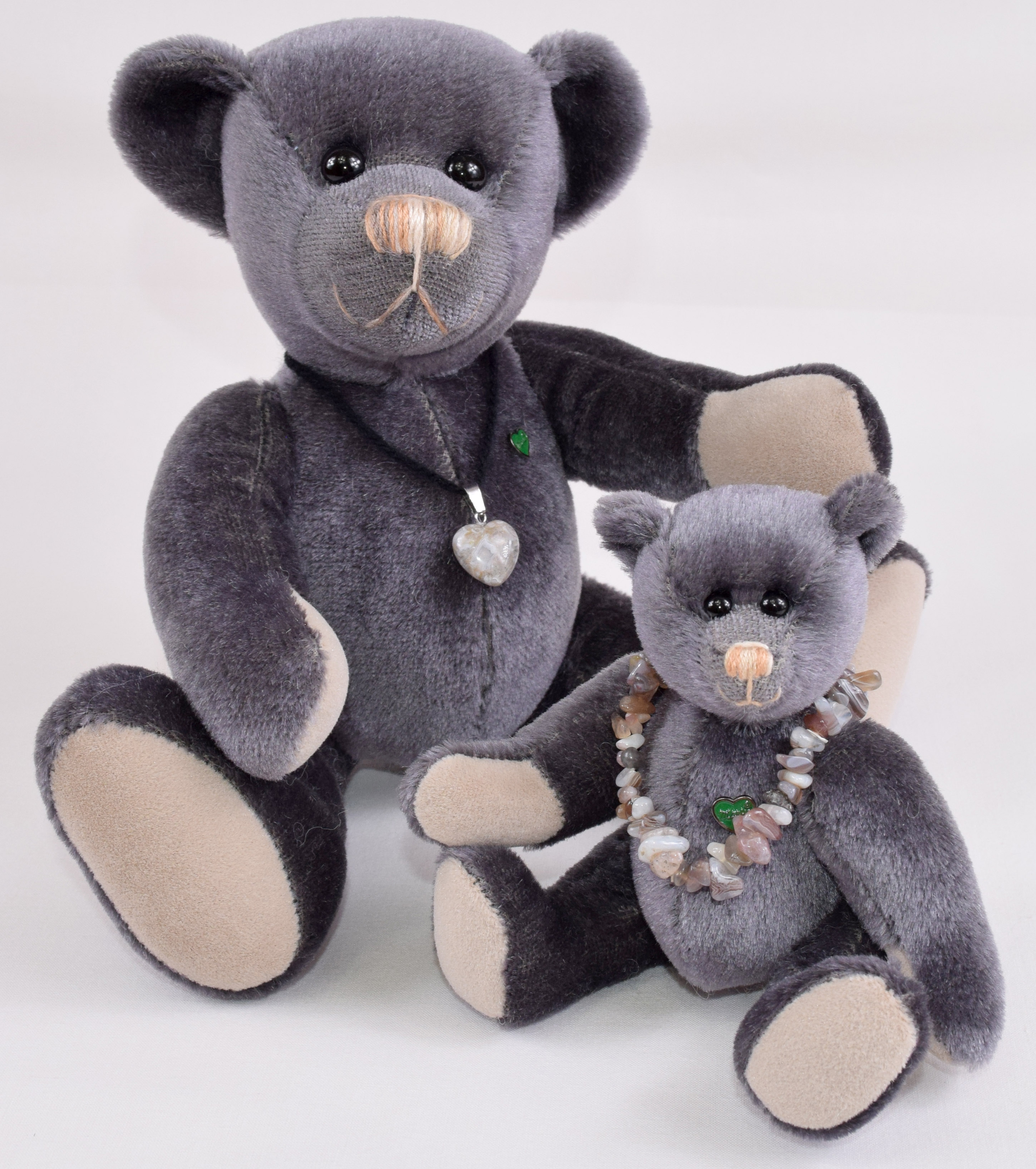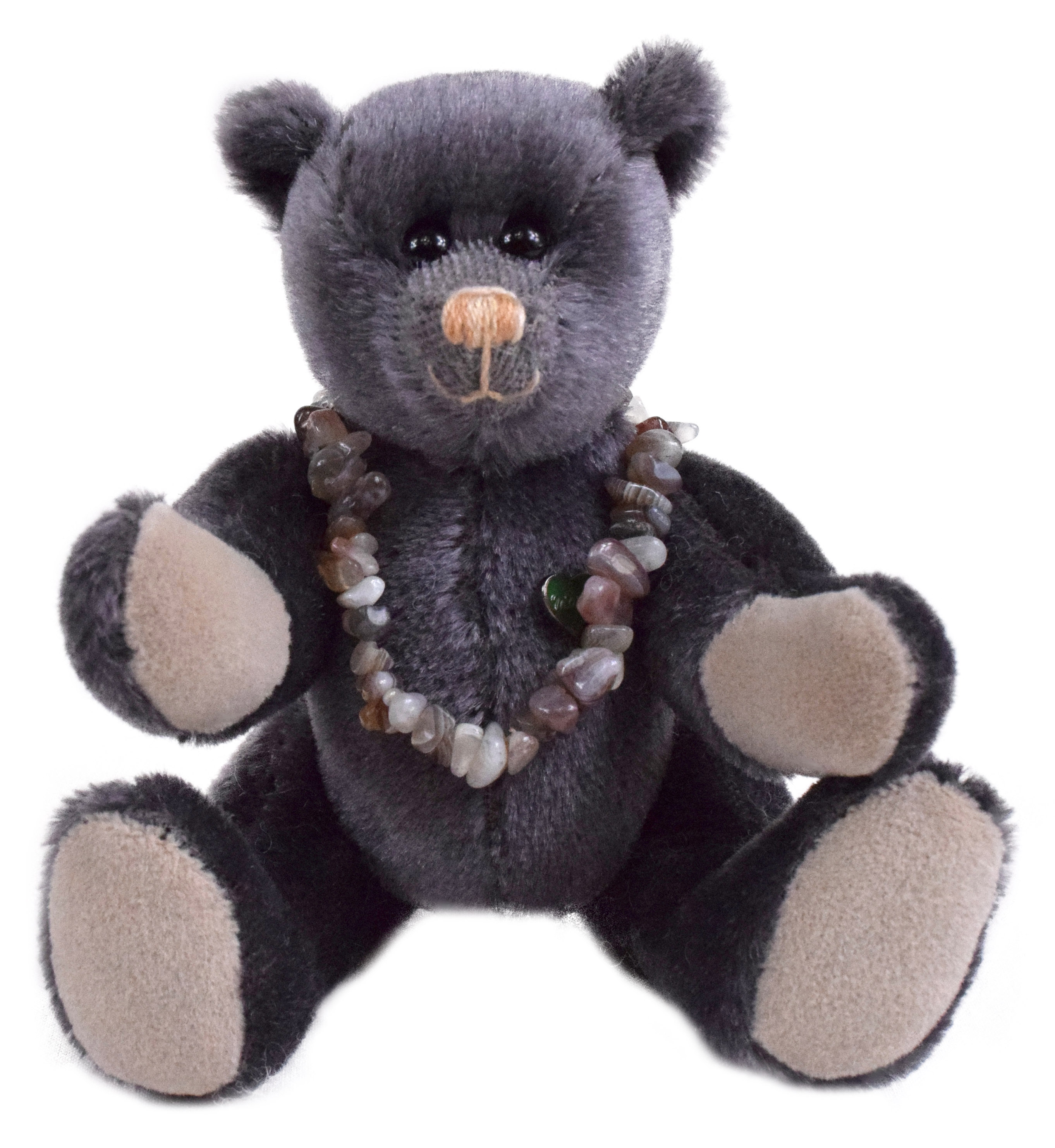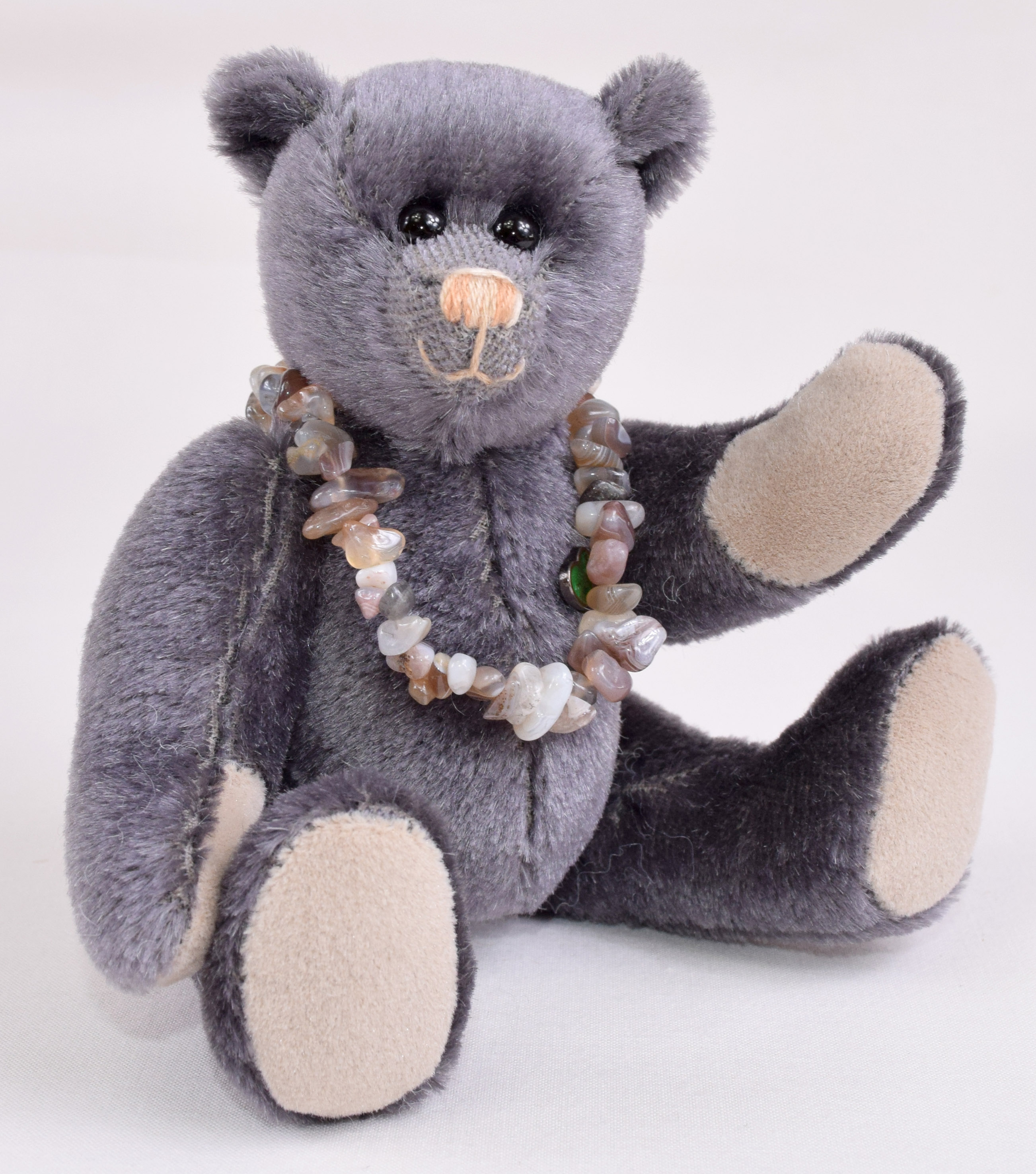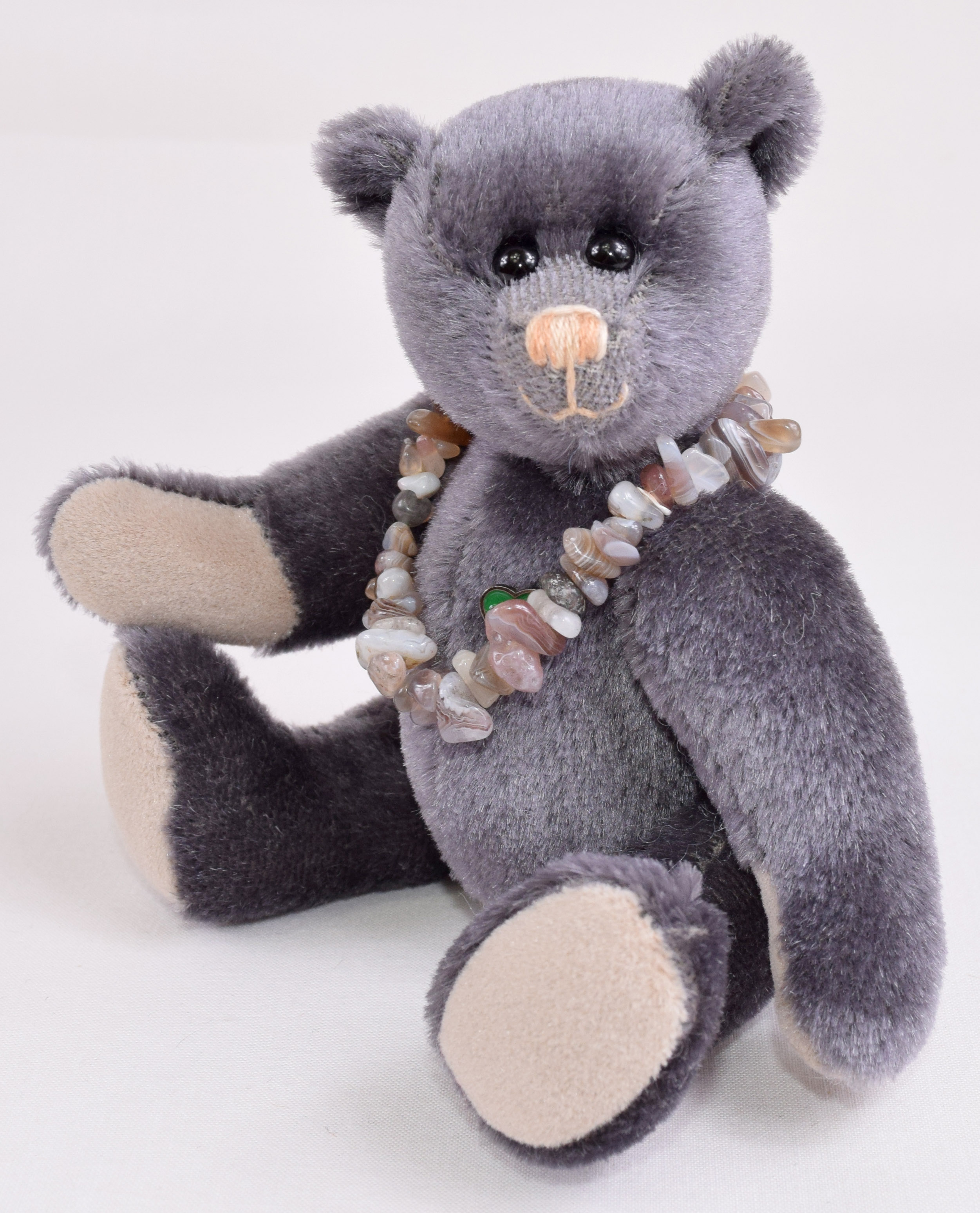 Ein vliesgefüllter Mohairteddy mit echtem Botswana-Achat - Armband. Das Armband ist abnehmbar, so dass auch sie es tragen können und nicht unbedingt an dem Teddy lassen müssen.
