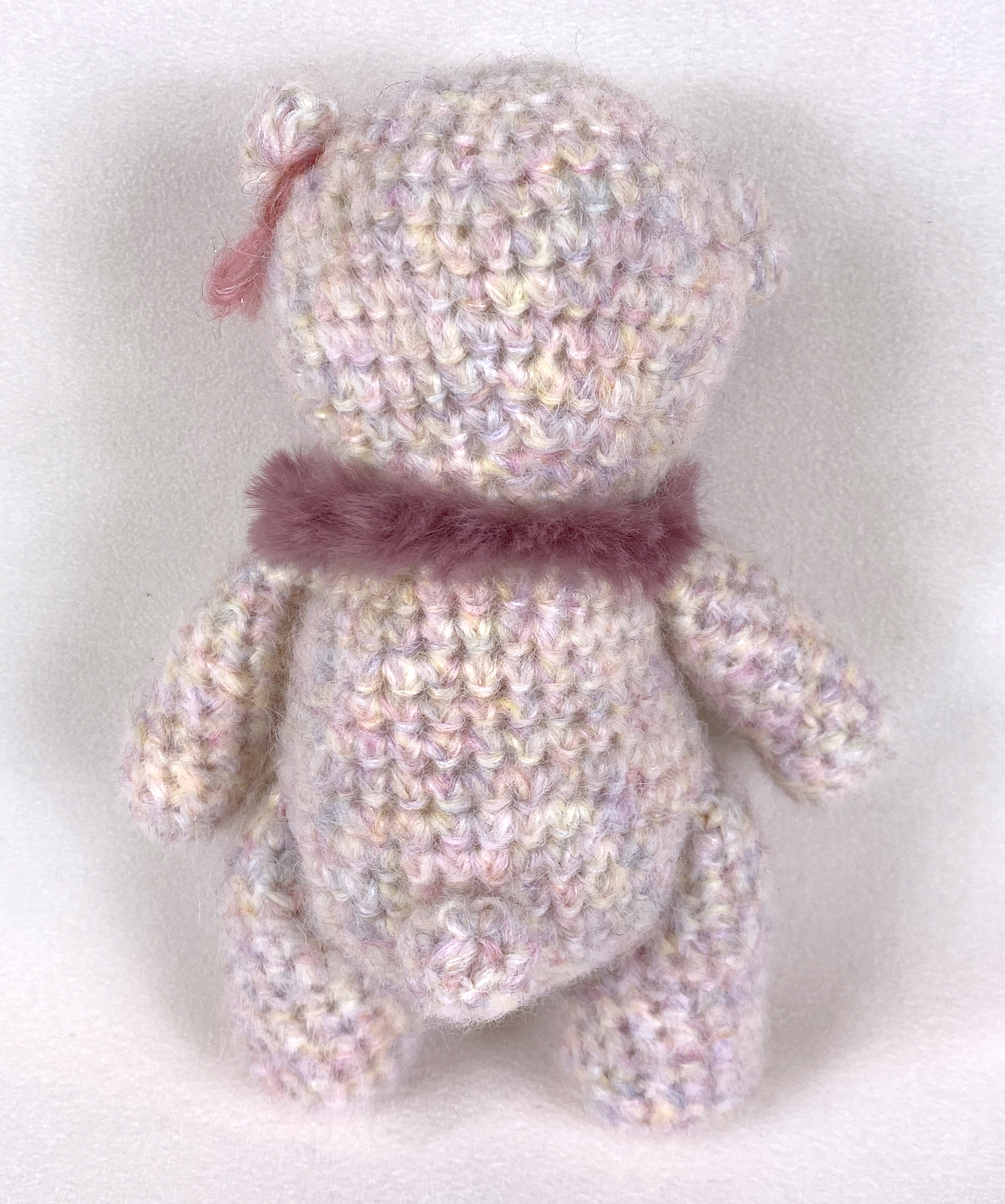 Bella bedeutet die Schöne und sie ist auch aus schönen pastellfarbenen Häkelgarn gehäkelt. Der Häkelteddy ist 20cm groß.