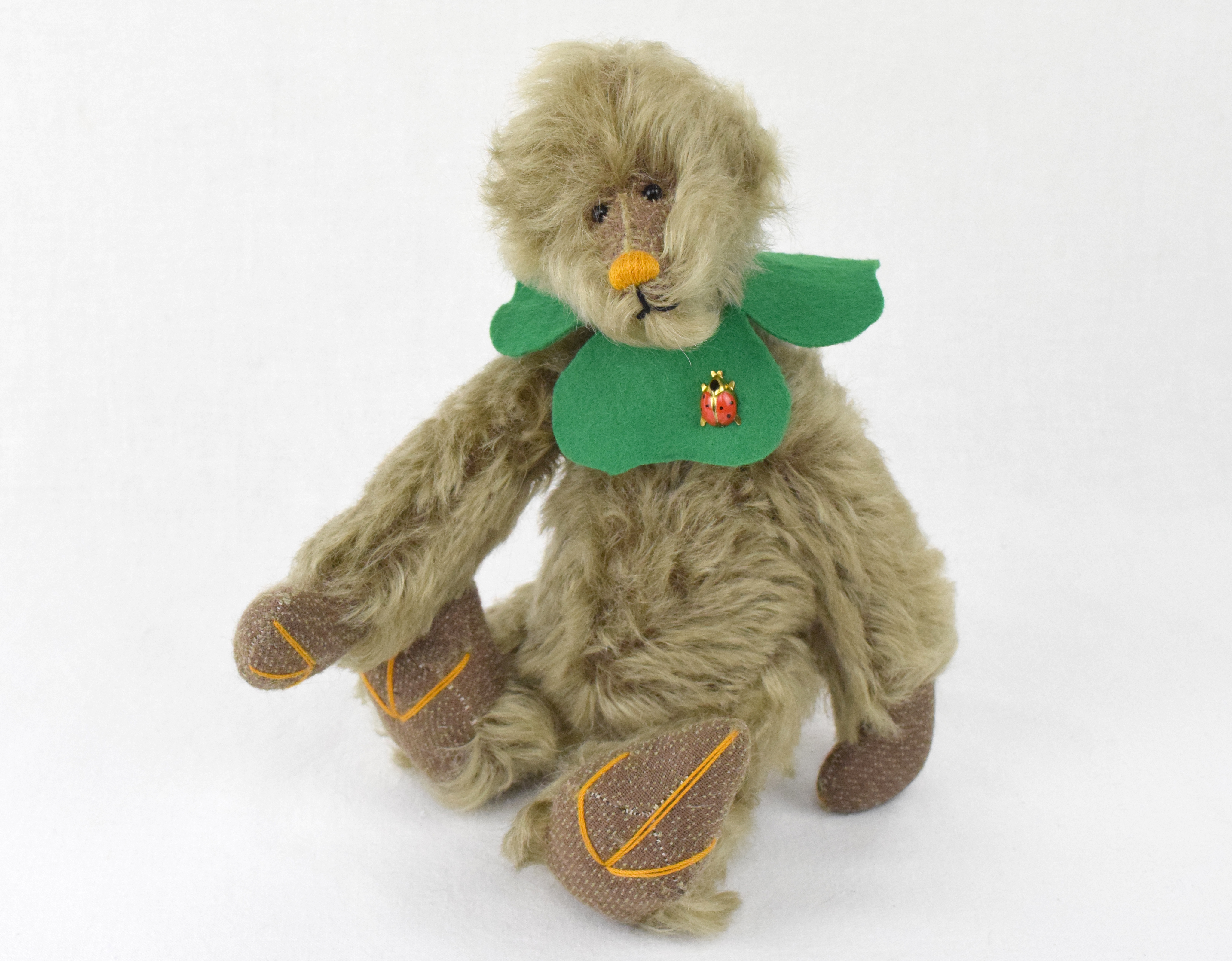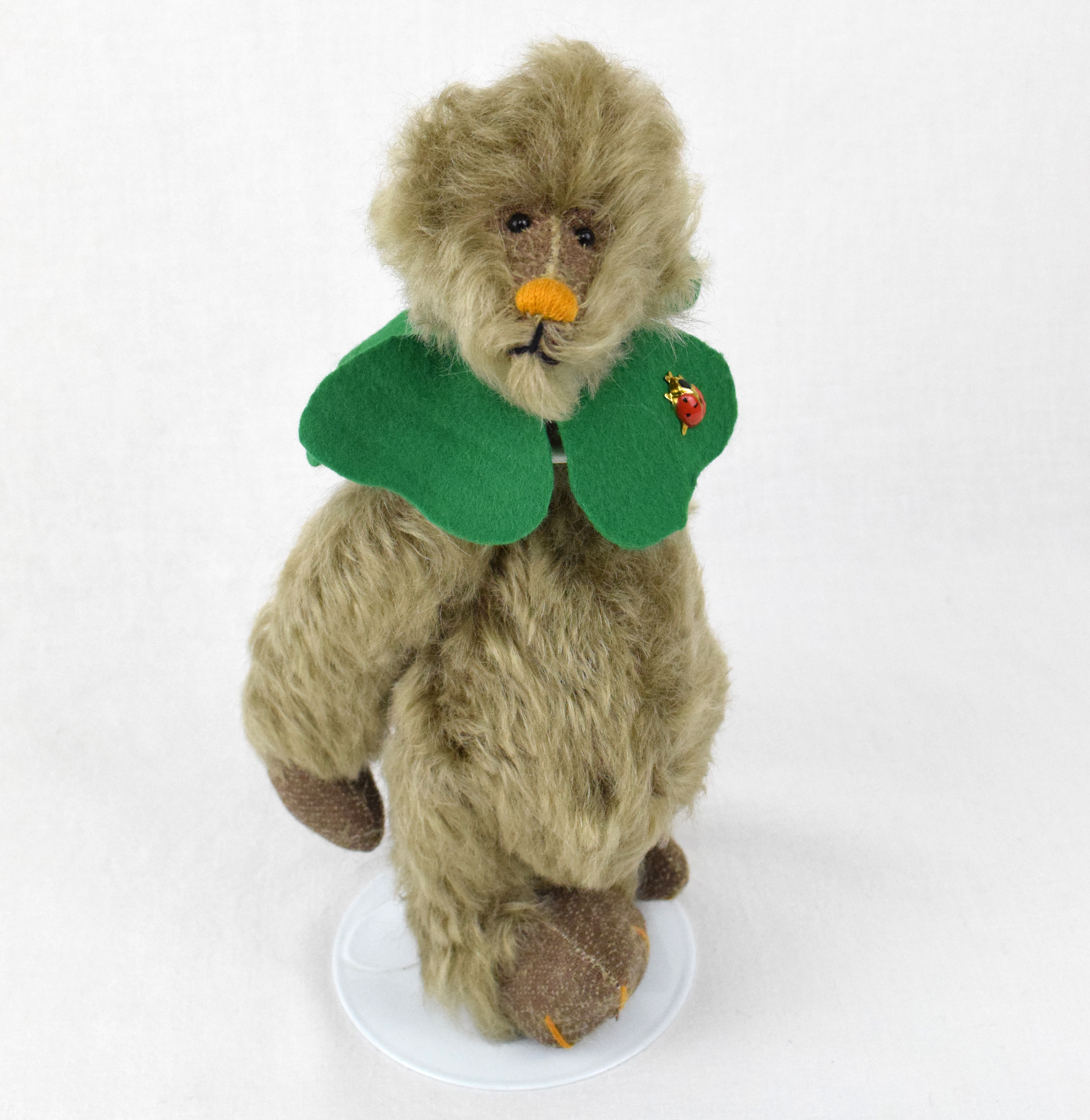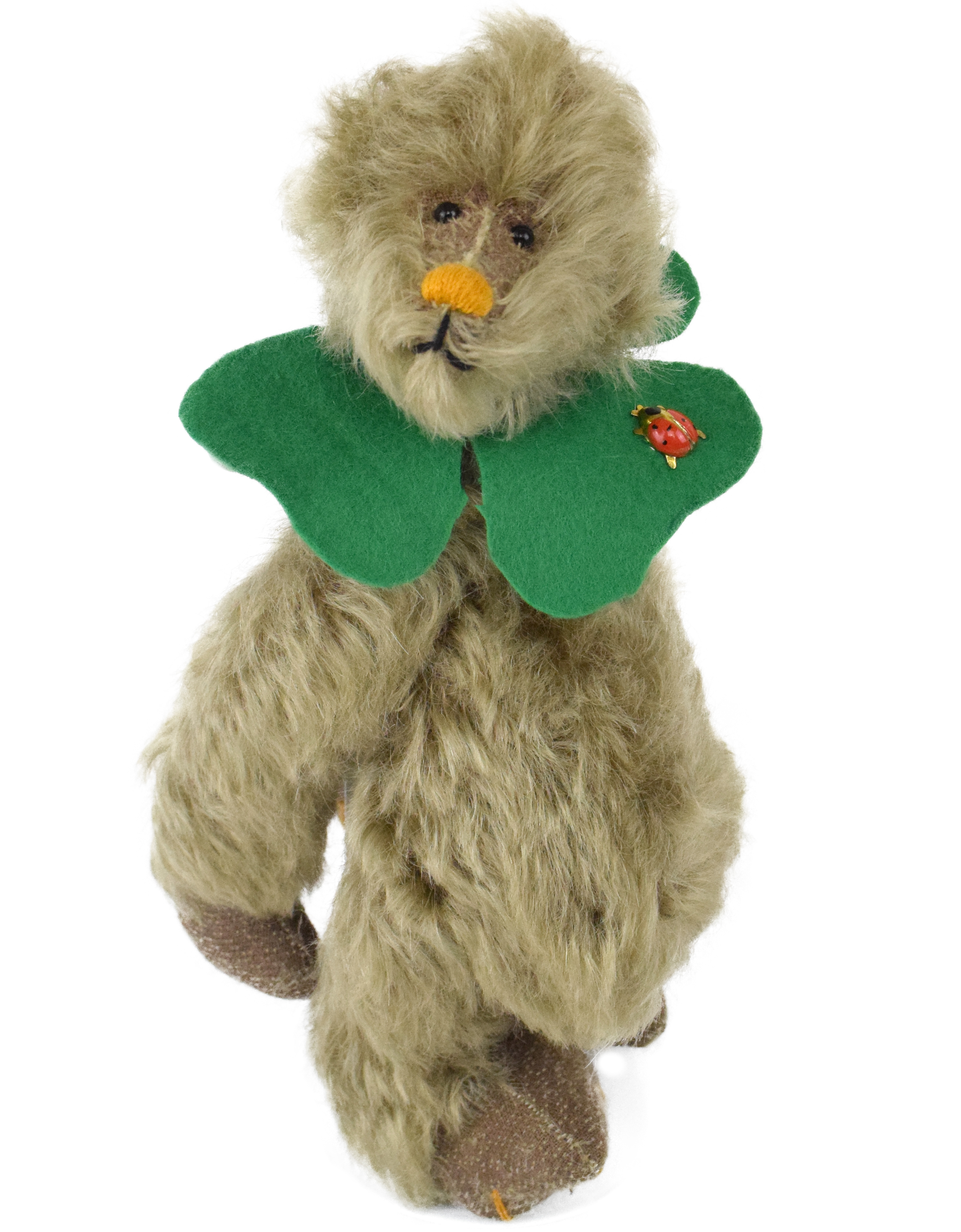 Das vliesgefüllte Bärchen ist 24 cm groß und hat eine lustige Statur. Um den Hals trägt der Glücksbär einen 4-blättriges Kleeblatt.