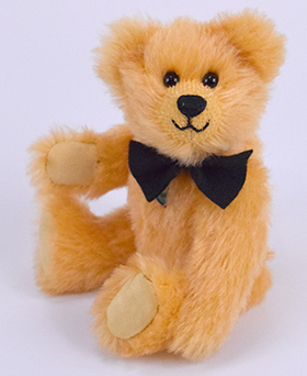 Er ist aus sonnengelbem Mohair gefertigt und trägt eine hübsche schwarze Fliege. Sonnengelb wie Sonneberg - die Heimatstadt der Martin Bären.