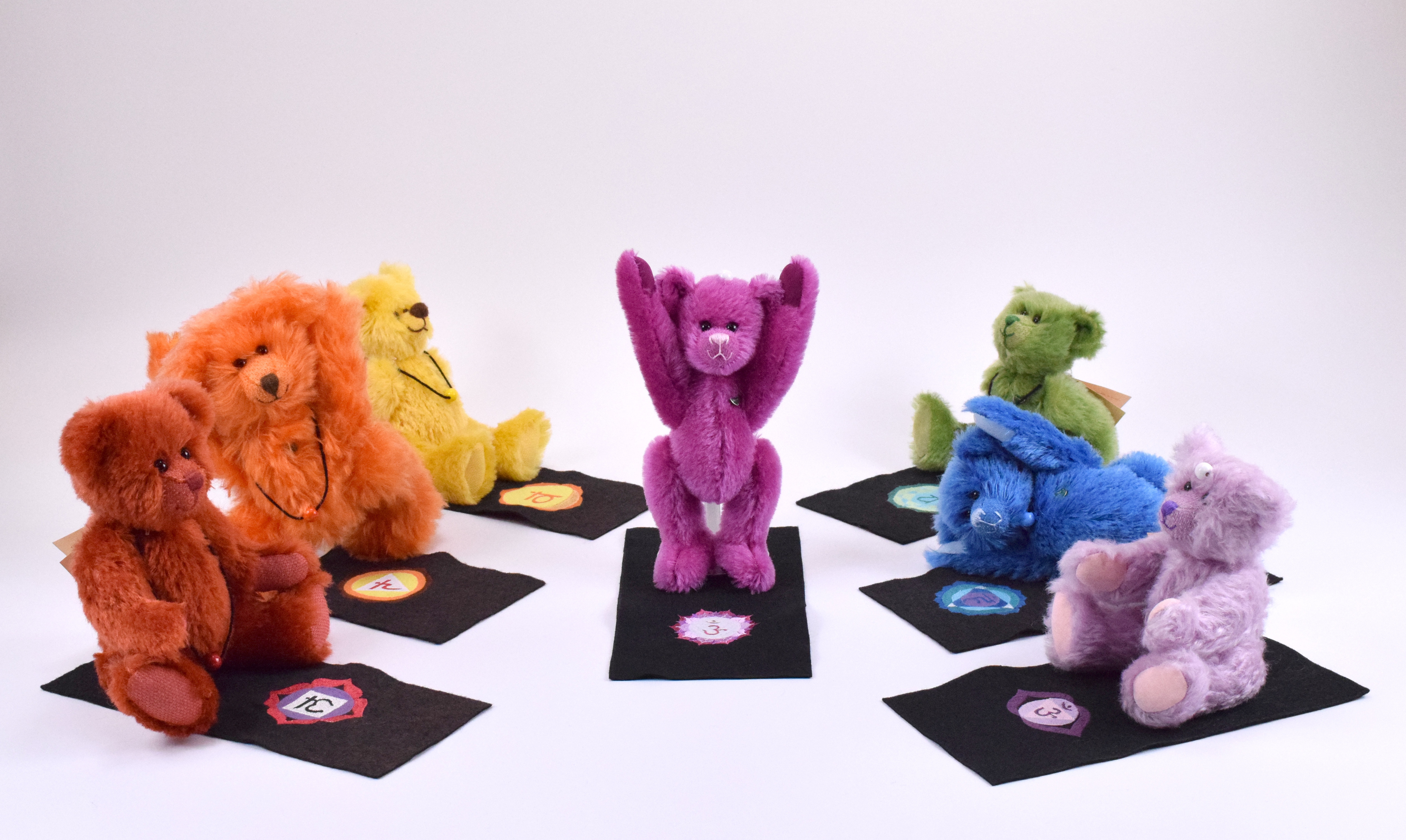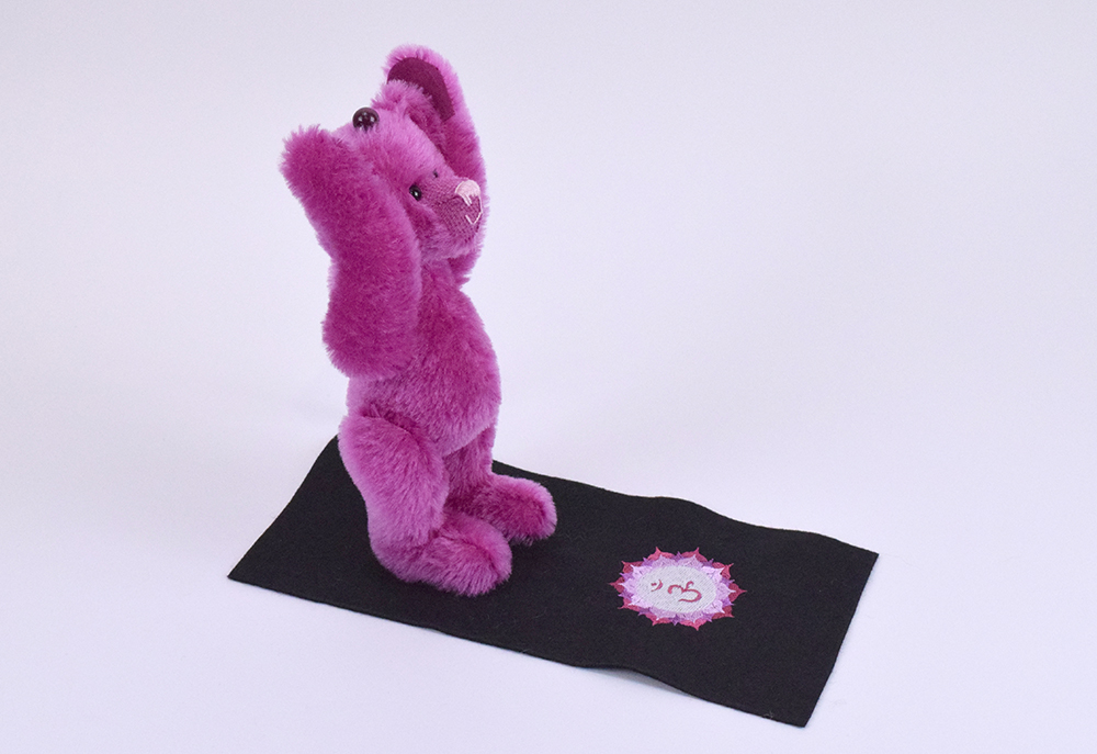 Das Kronenchakra-Bärchen ist 21 cm groß. Es ist aus wunderschönem kräftig-pinkem Mohair gefertigt und trägt eine pinke Perle an der Stelle des Energiezentrums (auf dem Kopf). Es sitzt auf einer edlen schwarzen Filzmatte, die mit dem Kronenchakra-Symbol bestickt wurde. Das Chakrabärchen ist weltweit auf 99 Stück limitiert.