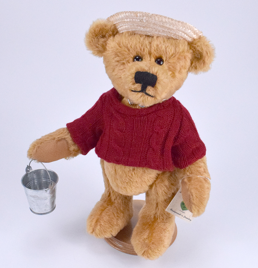 Der „Gärtner“ Teddybär ist ein liebevoll gestaltetes Unikat mit einer Größe von 36 cm.
